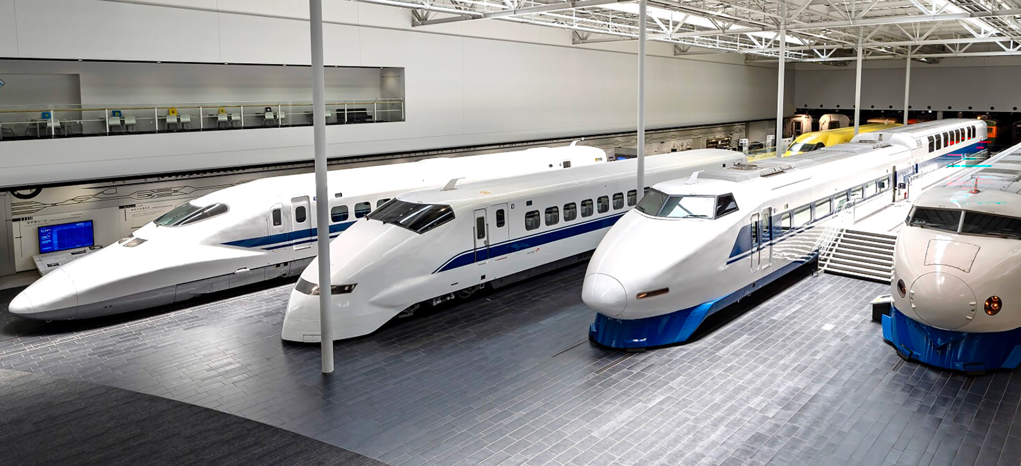 世界最高速度を記録した3つの車両をシンボルに、歴代の新幹線、在来線を含め39両の実物車両を展示しています。それぞれが活躍した時代に思いを馳せ、いろいろな角度から間近に見て、ふれて、乗って、その迫力を実感してください。