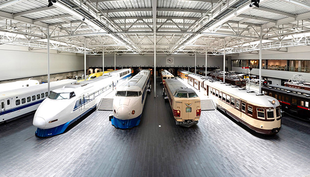 Next to the entrance there are three kinds of rolling stock that are symbols of high-speed rail in Japan. Each of them held the world speed record.